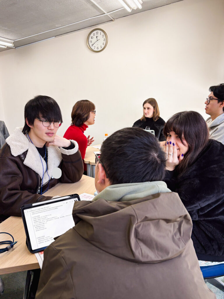 1月26日(月)に日本事情Bクラスでフリートークをおこないました。このクラスは現代の日本が抱える社会的な課題について学んだり議論したりするクラスですので、今回も「少子高齢化の現状、対策」という固い固いテーマでゲストの方々と話しました。後半は本当に「フリー」なテーマでおしゃべりを楽しみました。